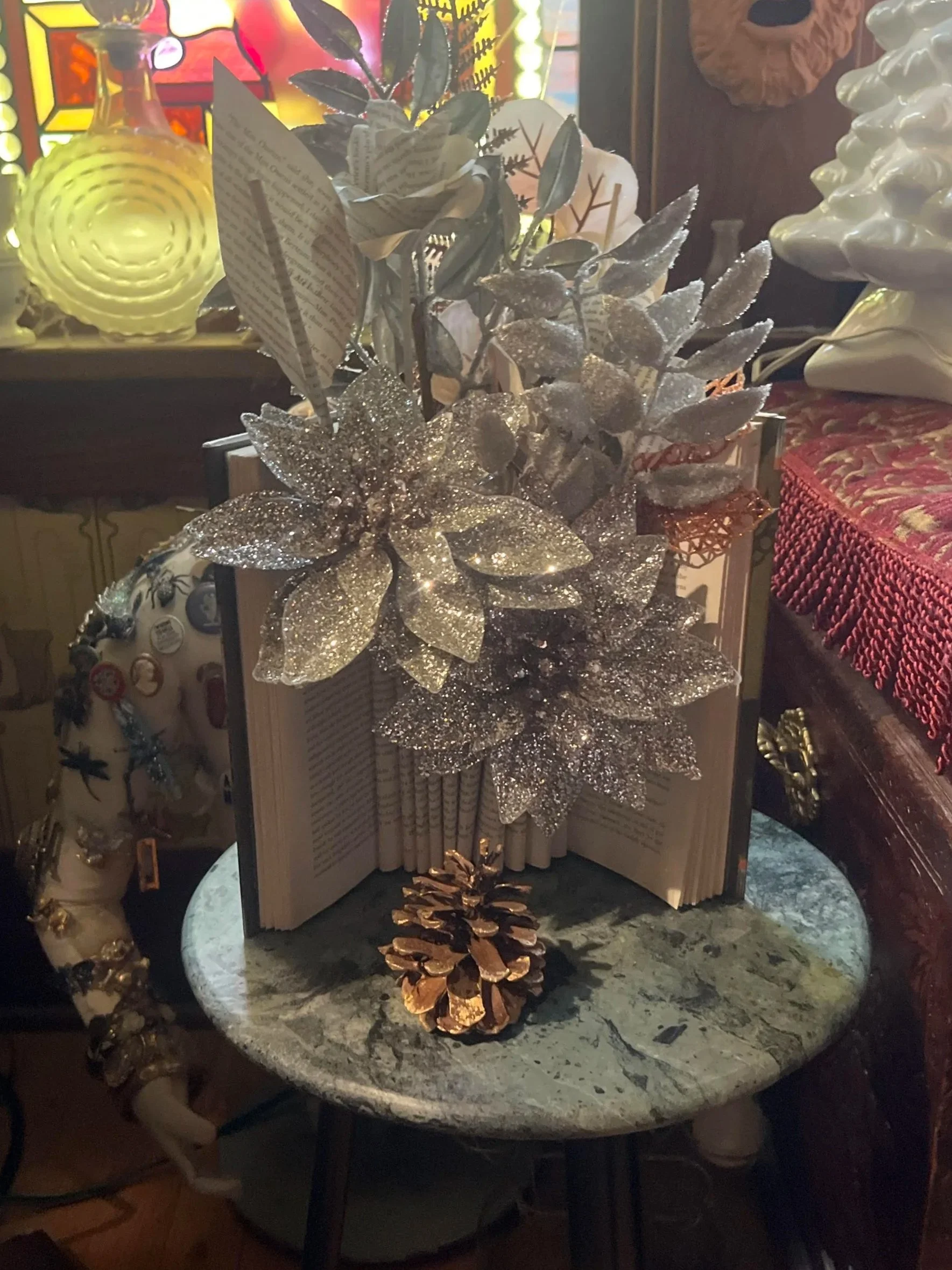 Using old hard cover books, participants will create a standing vase from curved book pages to hold dried or fake floral and fauna. This whimsical craft is perfect for vintage and recycled crafting. It is a classic piece that can be changed out with each season. Books and materials are provided but bring your own book if desired. Any hardcover books can be used. Participants can also bring a special book they want to use. Ie history, art, gardening or a special author.